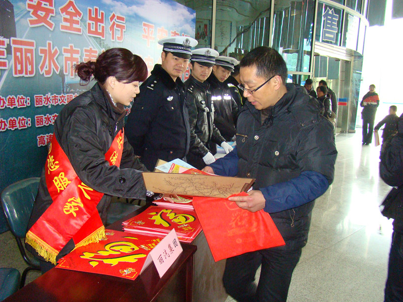 在客運西站前廳,市文明辦、市交通運輸局、市公安局、麗水廣播交通音樂頻率、麗汽集團等相關單位在這里設立咨詢展臺、懸掛宣傳橫幅、發(fā)放宣傳資料、播放專題片等,開展形式多樣的宣傳活動,努力營造濃厚的春運交通安全氛圍。