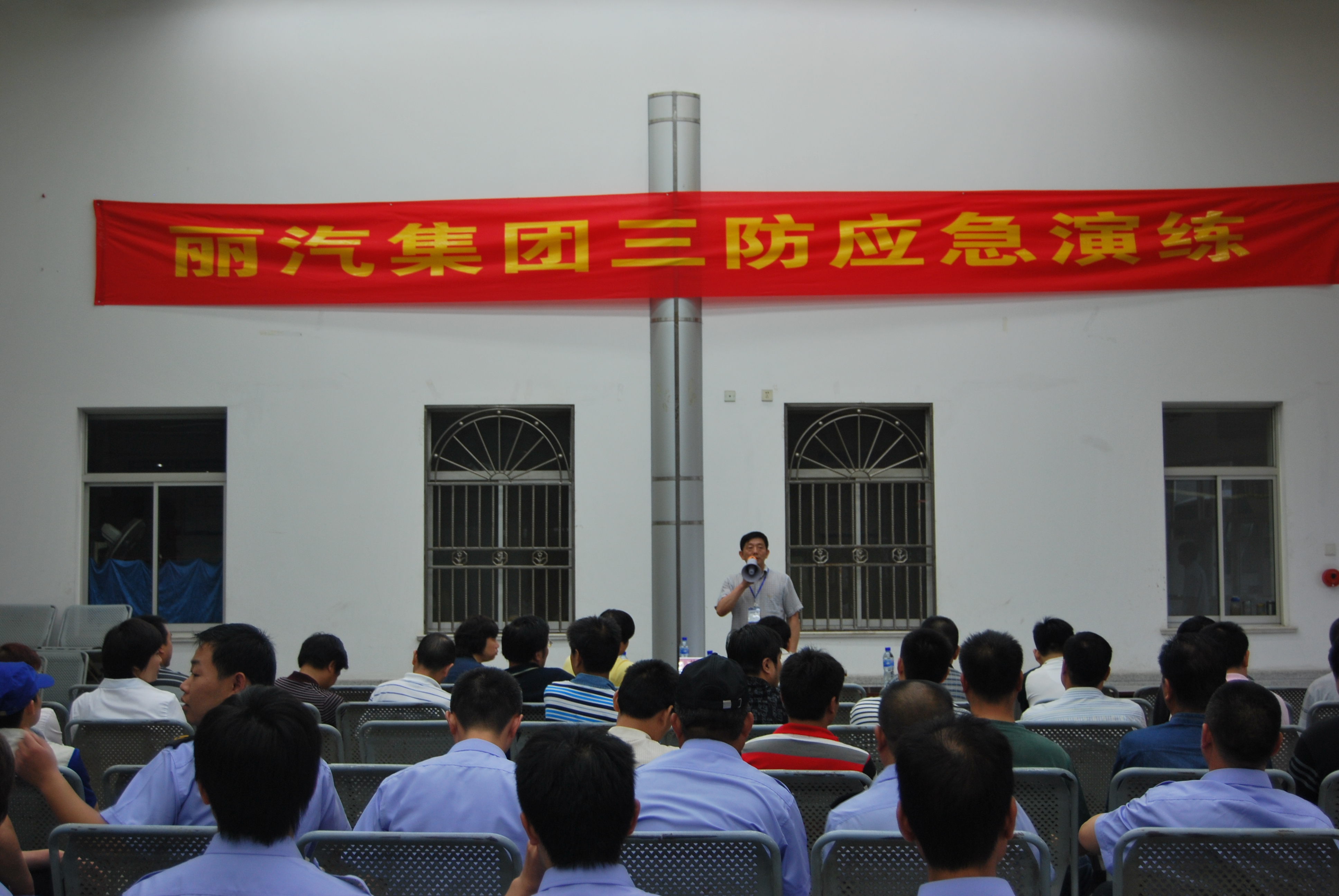 演練隨即進入第二環(huán)節(jié)??傊笓]宣布調(diào)派“三防”應(yīng)急分隊,不到5分鐘,由保衛(wèi)人員組成的“三防”應(yīng)急分隊集結(jié)完畢,來到演練現(xiàn)場。